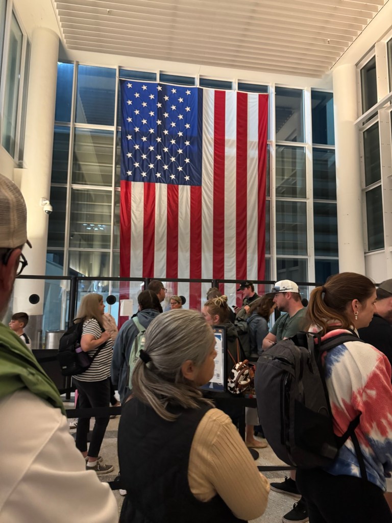 Plane’s delayed. Might not make connection in Chicago. Could be worse. Plenty of time though. Only benefit of 6:30am flight.